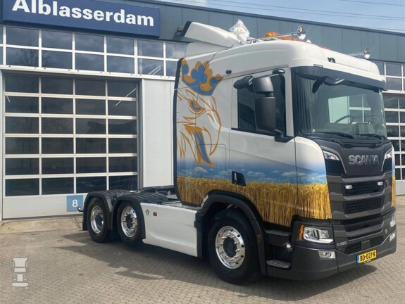 Transport Seves heeft een Scania V8 met een laag dak en een 3-serie zonneklep