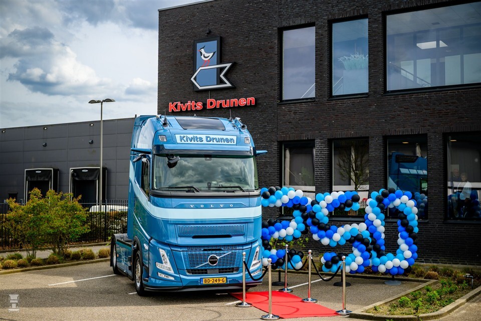Op de stoep van het bedrijf was van ballonnen het cijfer 250 gefabriceerd, zodat de Volvo er mooi naast geparkeerd kon worden. Aan de gebeurtenis mocht niet zomaar voorbijgegaan worden, zoveel is duidelijk. Kivits Drunen ontving de 250e vrachtwagen. Het betreft een Volvo FH Aero, geleverd door BAS Truck Center.