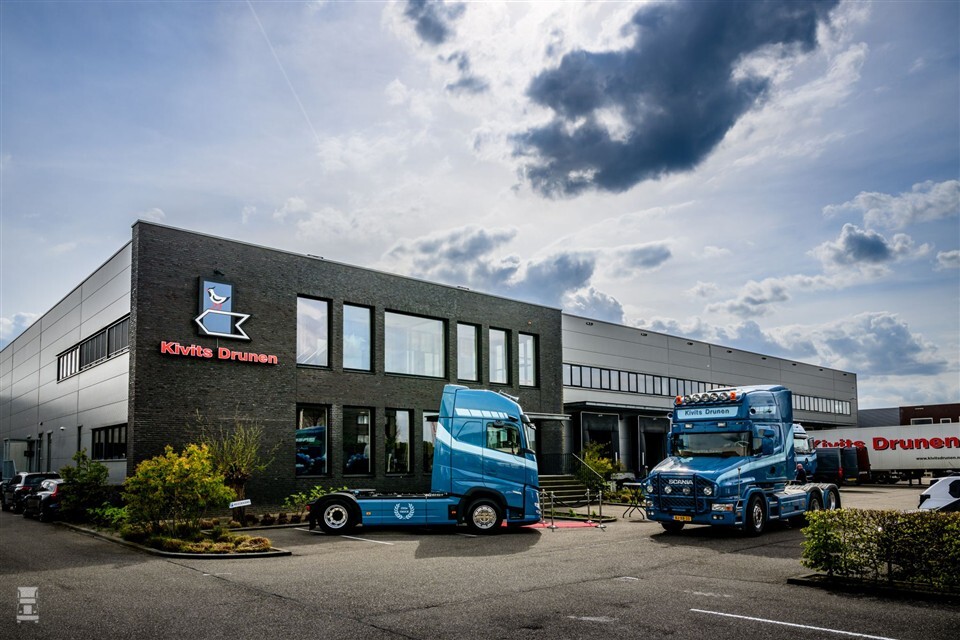 De Volvo is uiteraard in de bekende bedrijfskleuren gespoten en draagt trots nummer 250, omgeven door een laurierkrans. Er werden vier trekkers tegelijk geleverd. Deze zijn onderdeel van een order van maar liefst dertig stuks. Trots gingen de betrokkenen met de nieuwe aanwinst op de foto. In 75 jaar is Kivits Drunen flink gegroeid en veranderde het van een groothandel in AGF in een logistiek dienstverlener van formaat.