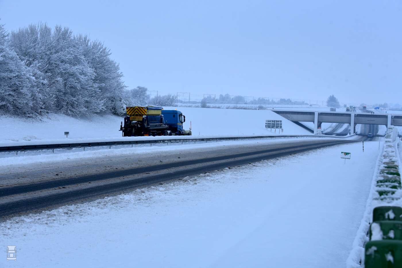 Een andere sneeuwploeg stond vast bij afrit Tijnje aan de A7. Twee RAM 4x4 pickup trucks brachten uitkomst, waarna de file achter de vastgelopen sneeuwploeg weer langzaam oploste. Dat had voor het verloop op de A7 weinig invloed, want net voor die afslag bleef ook een truck hangen in de middenberm. Alles bij elkaar was het een heftig dagje voor de chauffeurs, de bergingsteams en de sneeuwploegen.