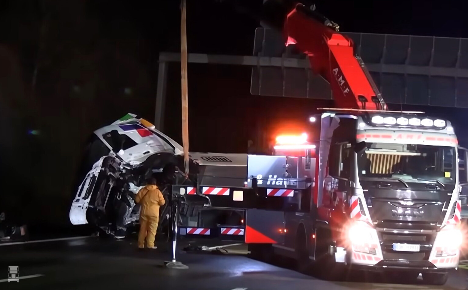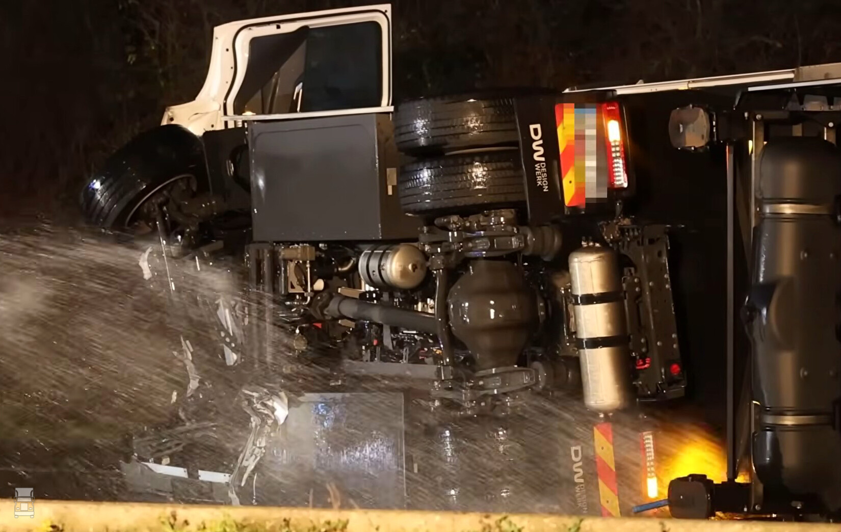 Elektrische trucks mogen sommige ADR goederen vervoeren, zolang het geen explosieve stoffen zijn. In dit geval bestond de lading uit vaten met, niet nader gespecificeerde chemicaliën. De chauffeur van de elektrische trekker, een door Designwerk aangepaste Volvo FM met Lithium-Ion accupakketten verloor de macht over het stuur, waarna de truck naar links stuurde. Daar werd de betonnen middenberm beveiliging geraakt, waarna de truck naar rechts afweek. Daarbij kantelde de combinatie, die in zijn val nog een personenauto meenam. Meteen na de crash kwam er rook uit de elektrische aandrijflijn.