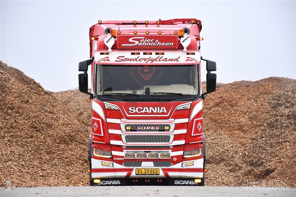 Allen rijdt al zeven jaar voor Sejer & Sønnichsen A/S uit het Deense Aabenraa. Hier vervoert hij biomassa voor biogas, zand, grind en gemalen gerecyclede materialen. Het bedrijf heeft een hele vloot fraaie rood-witte Scania’s. Allen was koning te rijk met zijn Scania R580 V8, maar toen vertelde zijn baas hem dat hij een nieuwe vrachtwagen zou krijgen. Zijn vorige trekker was namelijk vijf jaar oud. Allen wilde dit helemaal niet, tot hij hoorde wat zijn nieuwe trekker zou worden.