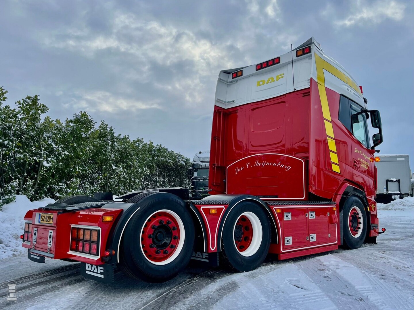 De nieuwe DAF is uitgevoerd met een 310 cm wielbasis als trekker met een gestuurde naloopas. Hierdoor ontstaat een korte draaicirkel, terwijl er toch genoeg technische reserve is voor hogere schoteldrukken.