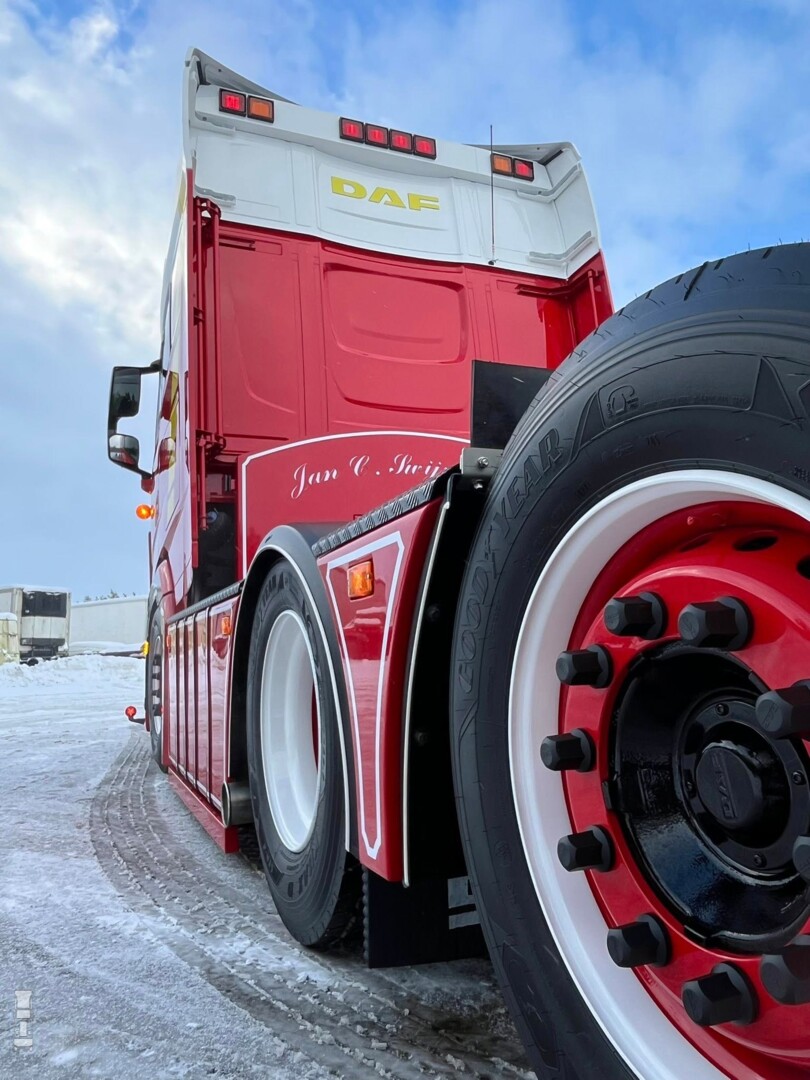 Alles bij elkaar een hele fraaie verschijning, deze nieuwe DAF. De stoere lichtbak, de extra onderspoiler en de diepe zonneklep zorgen voor een stoer uiterlijk.