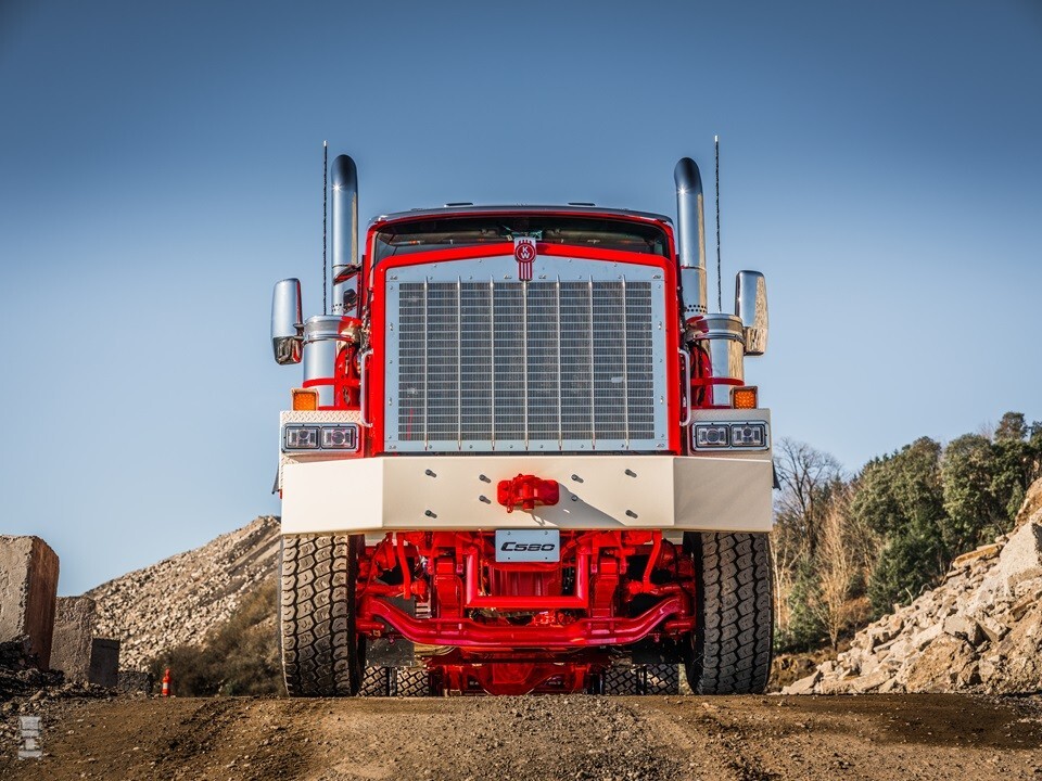 De Kenworth C580 vervangt de C500 en is bedoeld voor werk ver van de snelweg. Denk hierbij aan extreem zwaartransport in bijvoorbeeld de mijnen, olie-industrie en bosbouw. De vrachtwagen is voorzien van de nieuwste cabine van het merk. Deze biedt meer ruimte, technologie en comfort voor de chauffeur. Voor de enigszins aerodynamische voorruit zit echter een enorme vierkante motorkap. Voor toegang tot de 605 pk-sterke Cummins C15 motor klap je de zijkanten op, net zoals bij auto’s van 120 jaar geleden.