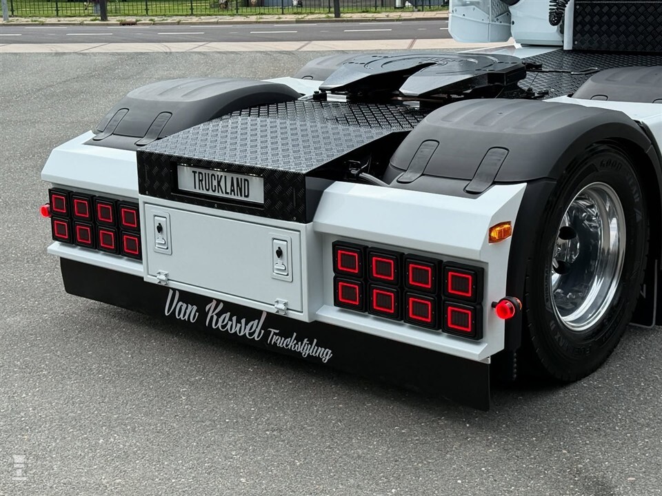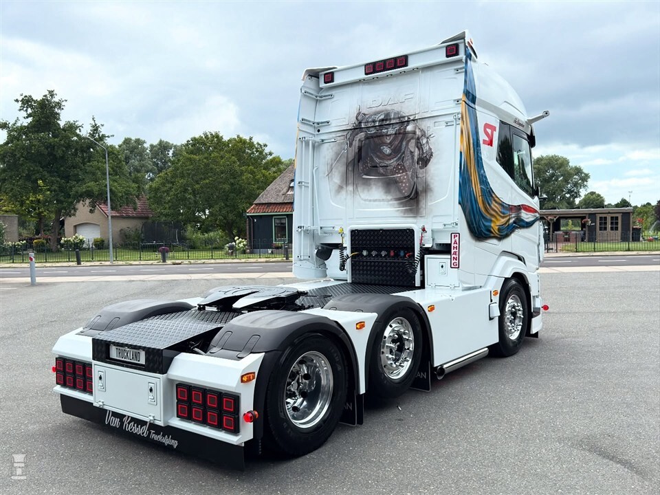 Hier houdt het echter niet op. Zo kreeg de DAF een heuse side-pipe. Van Kessel Truckstyling nam de trekker goed onderhanden, onder andere met onderdelen van Solarguard. Achter op de cabine verscheen het portret van een indrukwekkende Viking. De DAF kreeg de naam The Dragonborn mee.