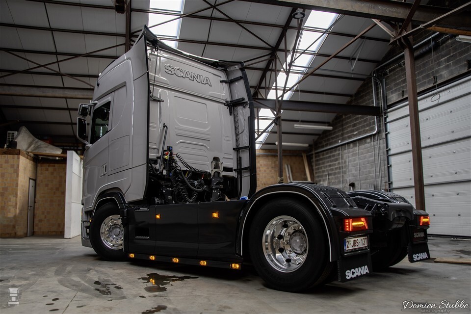 Zodoende hakte Domien de knoop door en kocht hij zijn eerste vrachtwagen. Geen Volvo, maar een Scania 500S. De grijze trekker is precies wat hij voor ogen had voor zijn werk als eigenrijder. Domien rijdt er groupage van voedingsmiddelen mee, onder andere naar groothandel, kleinhandel en distributiecentra. Domien is nu de koning te rijk en zeg nou zelf: wie zou dat met zo’n Scania niet zijn?