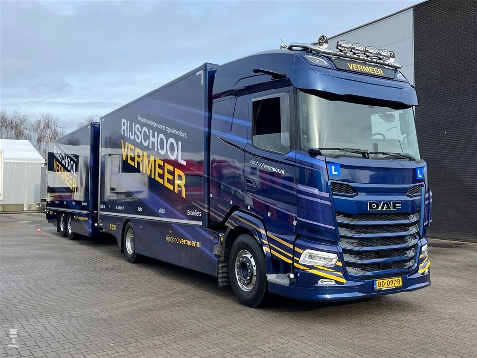 Rijschool Vermeer uit Bunschoten geeft rijles in alle categorieƫn, van bromfiets tot grote vrachtwagen. Voor het grote werk heeft het bedrijf een nieuwe DAF leswagen aangeschaft. Deze gaat samen met de al aanwezige Volvo FH kandidaten in de omgeving van Amersfoort helpen aan een groot rijbewijs. De nieuwe bakwagen kan ook met een aanhangwagen op pad voor het lessen voor C-E.