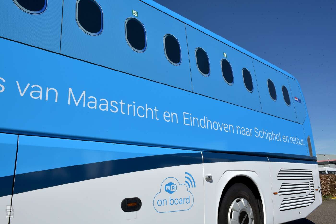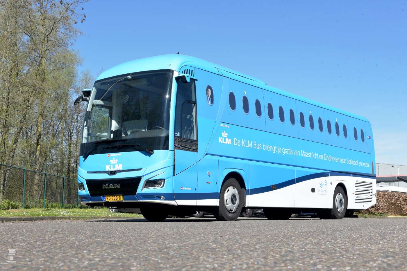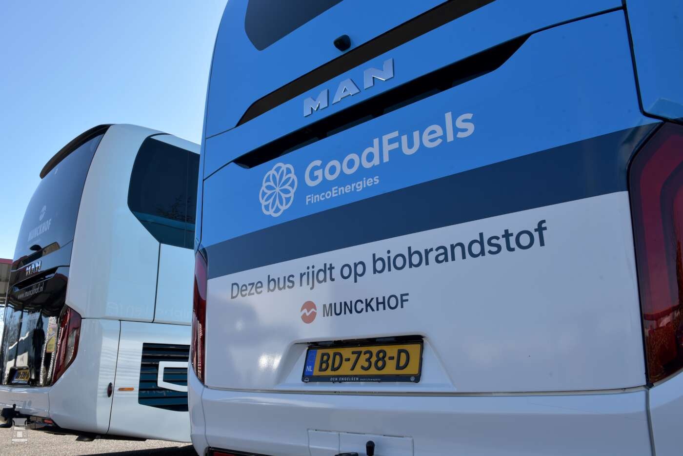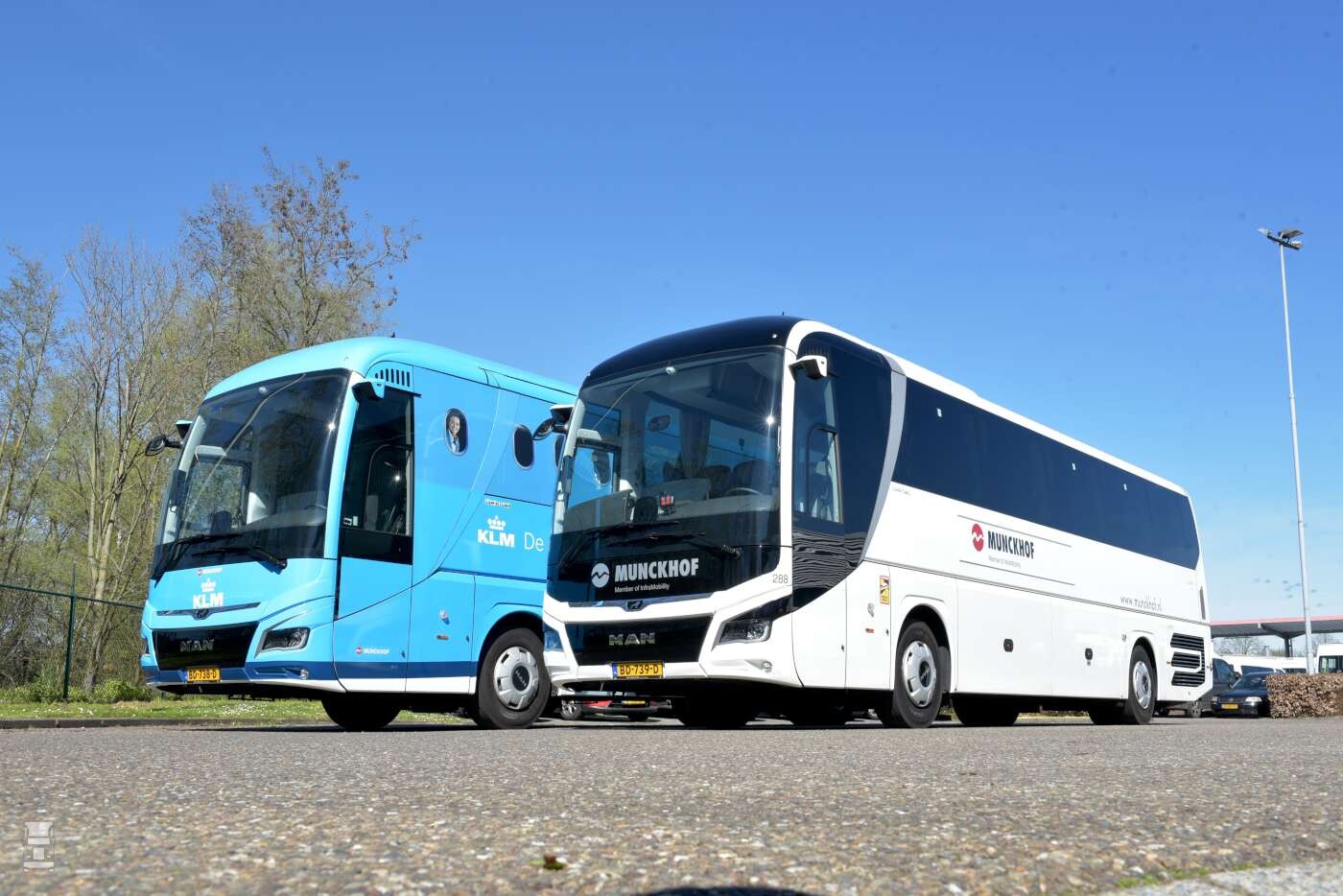 De Lion’s Coach die voor de KLM wordt ingezet, is volledig in de KLM-huisstijl uitgevoerd, compleet met de kenmerkende vliegtuigraampjes. De passagiers hebben echter gewoon een riant uitzicht doordat er speciale folie is toegepast op de ramen. De MAN Lion’s Coach rijdt op verzoek van de KLM op HVO100 van GoodFuels, een biobrandstof waarmee Munckhof bijdraagt aan duurzamer vervoer. Naast de speciale KLM touringcar werd er ook een identiek exemplaar in de Munckhof-kleurstelling in gebruik genomen.