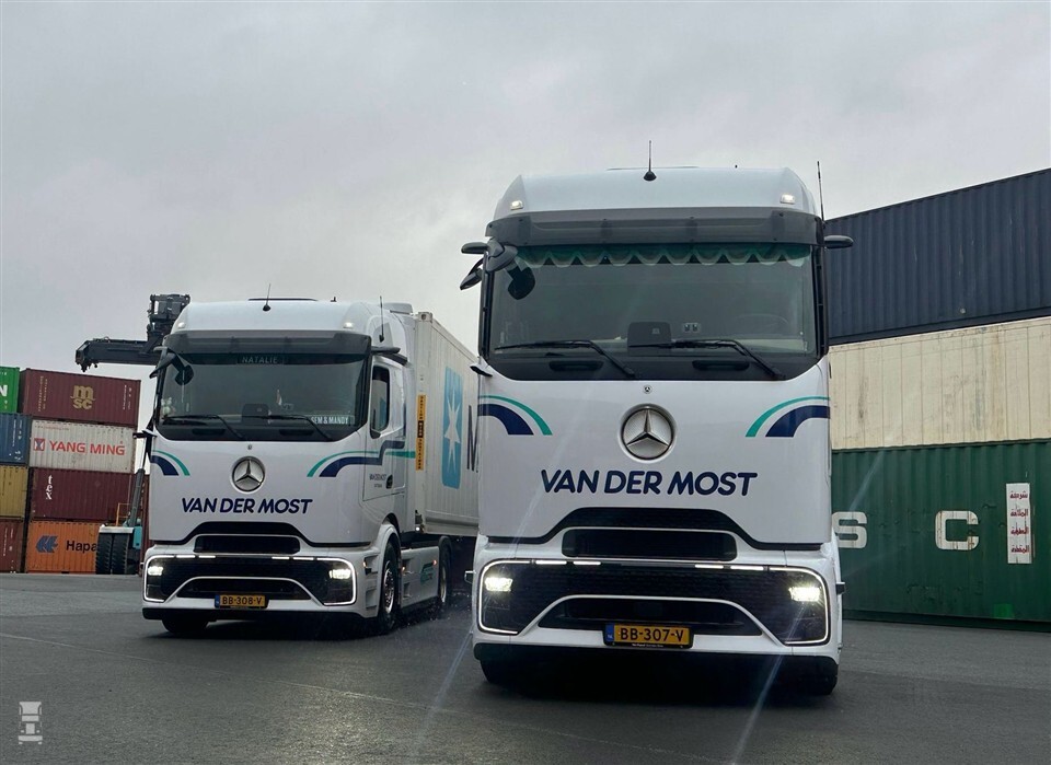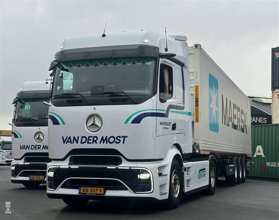 De elektrische vrachtwagens gaan namelijk niet alleen containers ophalen en wegbrengen naar de verschillende containerterminals in Rotterdam. Het is de bedoeling dat de vrachtwagens normaal worden ingezet voor transporten in de Benelux en naar Duitsland. De eActros 600 trekkers zijn gespoten in de gebruikelijke bedrijfskleuren van Van der Most en dragen alleen een aanduiding van de elektrische aandrijflijn op de zijskirts.