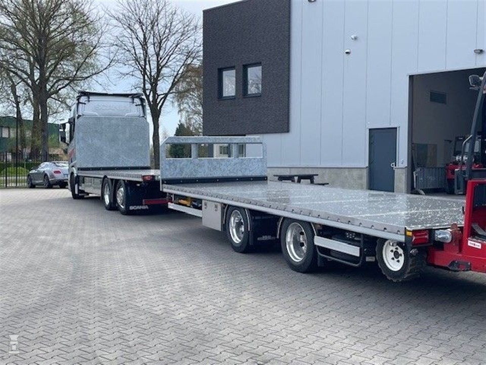 Aan de Scania is een eveneens nieuwe H&W aanhangwagen gekoppeld. Hij is uitgerust met een lift-as. Achter de aanhanger hangt ook een Kooiaap, zodat de chauffeur de hekken zelf kan laden en lossen. De opbouw van de Scania en de aanhangwagen zijn voorzien van speciale RVS kantprofielen en kisten. De combinatie is voorzien van glimmende Alco Dura-bright velgen.
