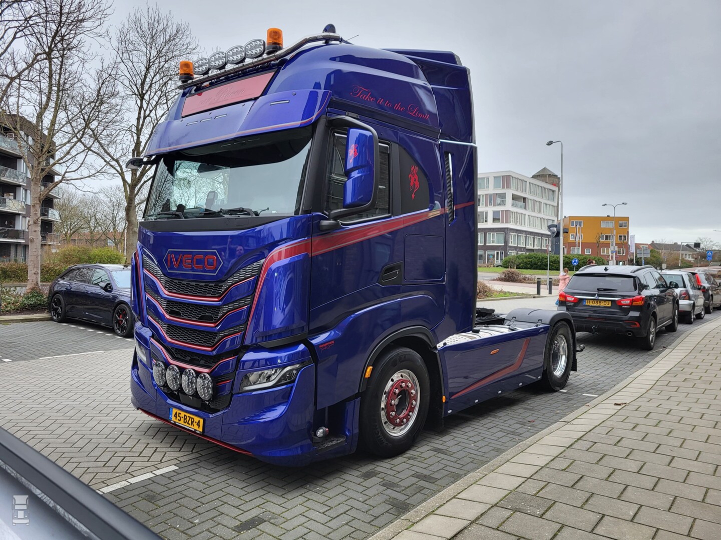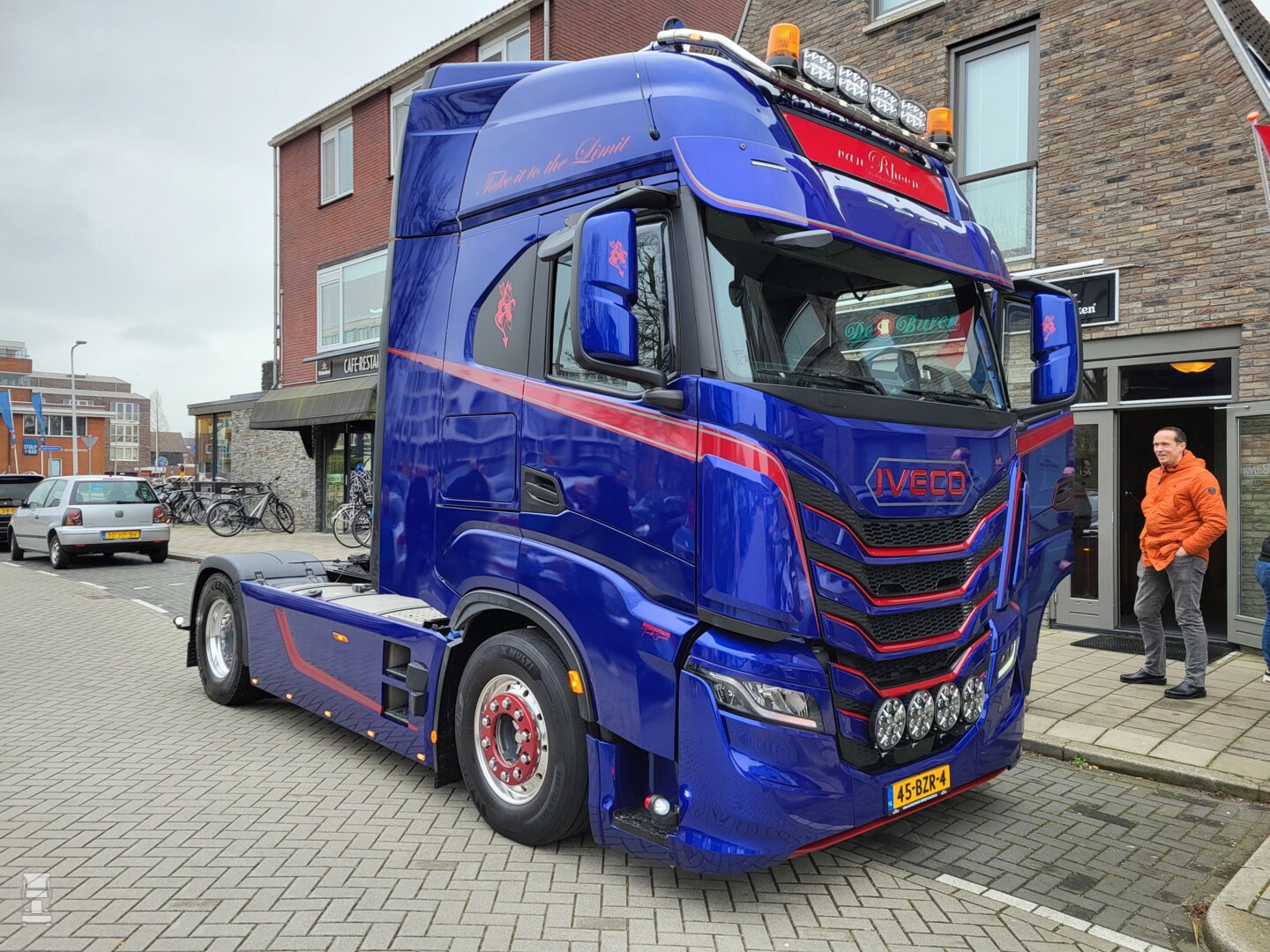 Iveco dealer Kwakernaak zorgde voor de opbouw en de aflevering van de Iveco AS440ST/FP. Dat is de officiele benaming van deze, 500 pk sterke Iveco. Chauffeur Edwin gaat er maandag voor het eerst mee de weg op.