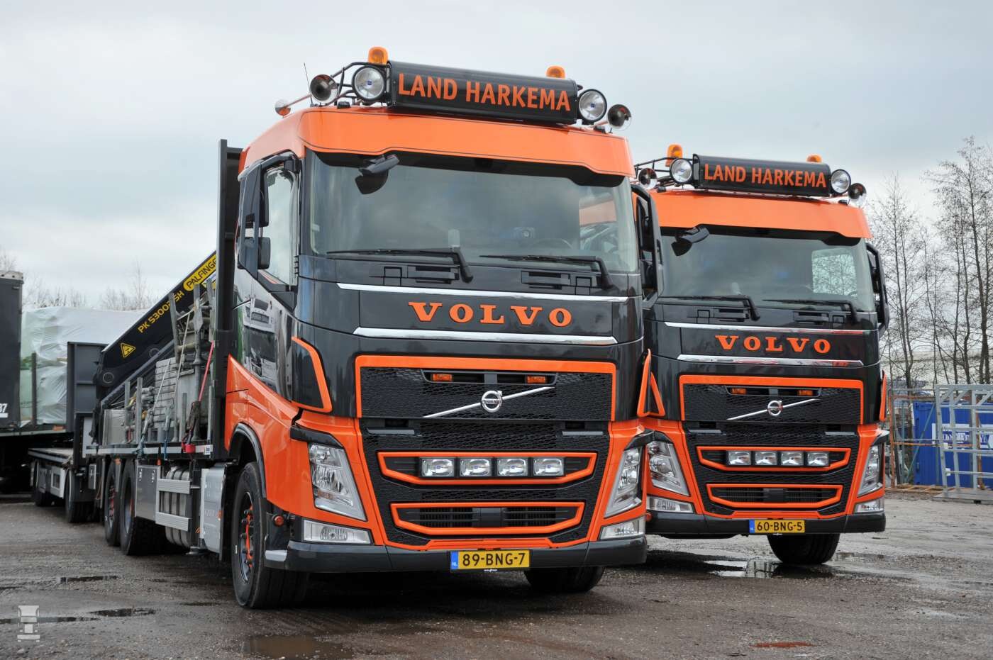 De vloot van Land Transport Harkema telt inmiddels veertig trekkende eenheden waarvan het merendeel van het merk Volvo. Land Transport is actief in verschillende disciplines waaronder geconditioneerd transport, semi-dieplader transport, het vervoer in schuifzeilopleggers met of zonder kooiaap en het vervoer van bouwgerelateerde goederen met auto’s met autolaadkraan. De jongste investering in twee nieuwe combinaties past binnen die laatste categorie. Land Transport rijdt met name kozijnen en prefab- bouwelementen, maar ook containerunits, steigermateriaal en betonwaren zoals putten. Daarvoor zijn multifunctionele combinaties nodig en daar is in samenwerking met Volvo Trucks dealer Nijwa en Rondaan Carrosserie uitstekend in geslaagd.