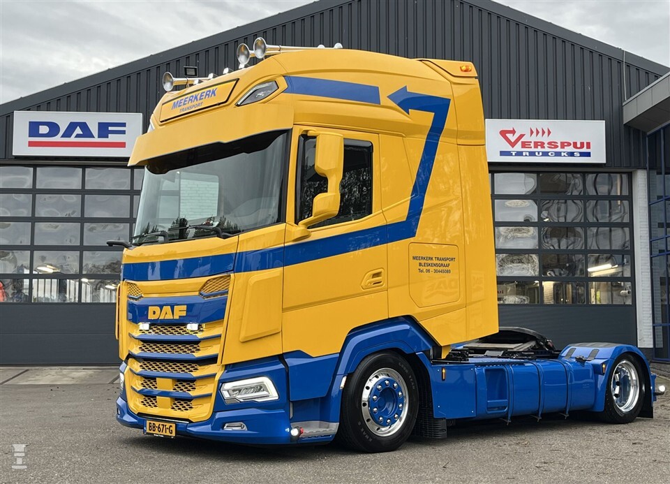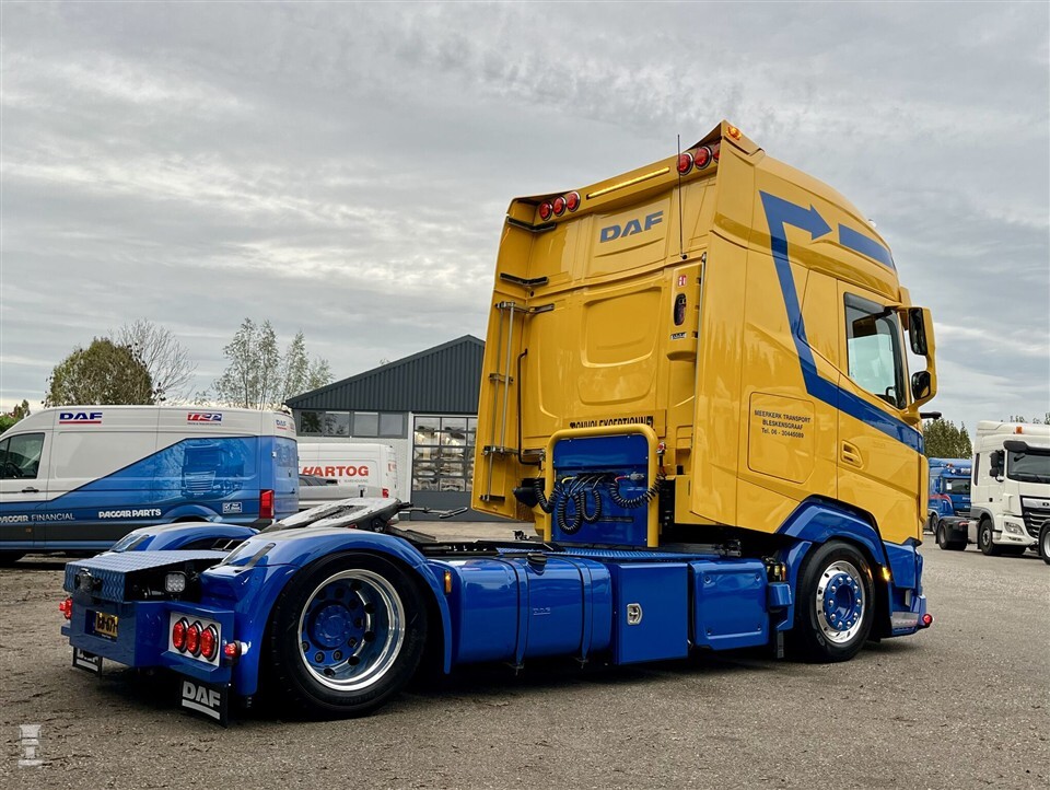 De nieuwe DAF is overal op voorbereid met luchtvering rondom en een hef- en schuifschotel. Hoewel de trekker nog gewoon spiegels heeft, zijn er wel camera’s gemonteerd voor breedtetransport. Het slangenrek heeft diverse extra aansluitingen. Naast vier luchthoorns en extra toplichten zijn ook verschillende zwaai- en flitslampen gemonteerd. Ook kreeg de DAF verschillende opbergkisten voor gereedschap. Oftewel: deze DAF kan alles aan.
