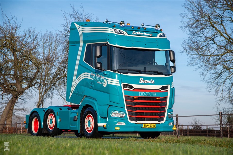 Bennie Achterkamp Transport uit Beemte heeft vorige week de eerste van twee nieuwe DAF trekkers in gebruik genomen. Het betreft een XG FTG met DAF’s sterkste diesel onder de cabine. Deze levert een vermogen van 530 pk. De nieuwe aanwinst ziet eruit om door een ringetje te halen. De bedrijfskleuren staan erg goed op de XG. Ze zijn opgebracht door Sluikhuis Automotive in Apeldoorn. Hertgers Reclame verzorgde de bestickering.