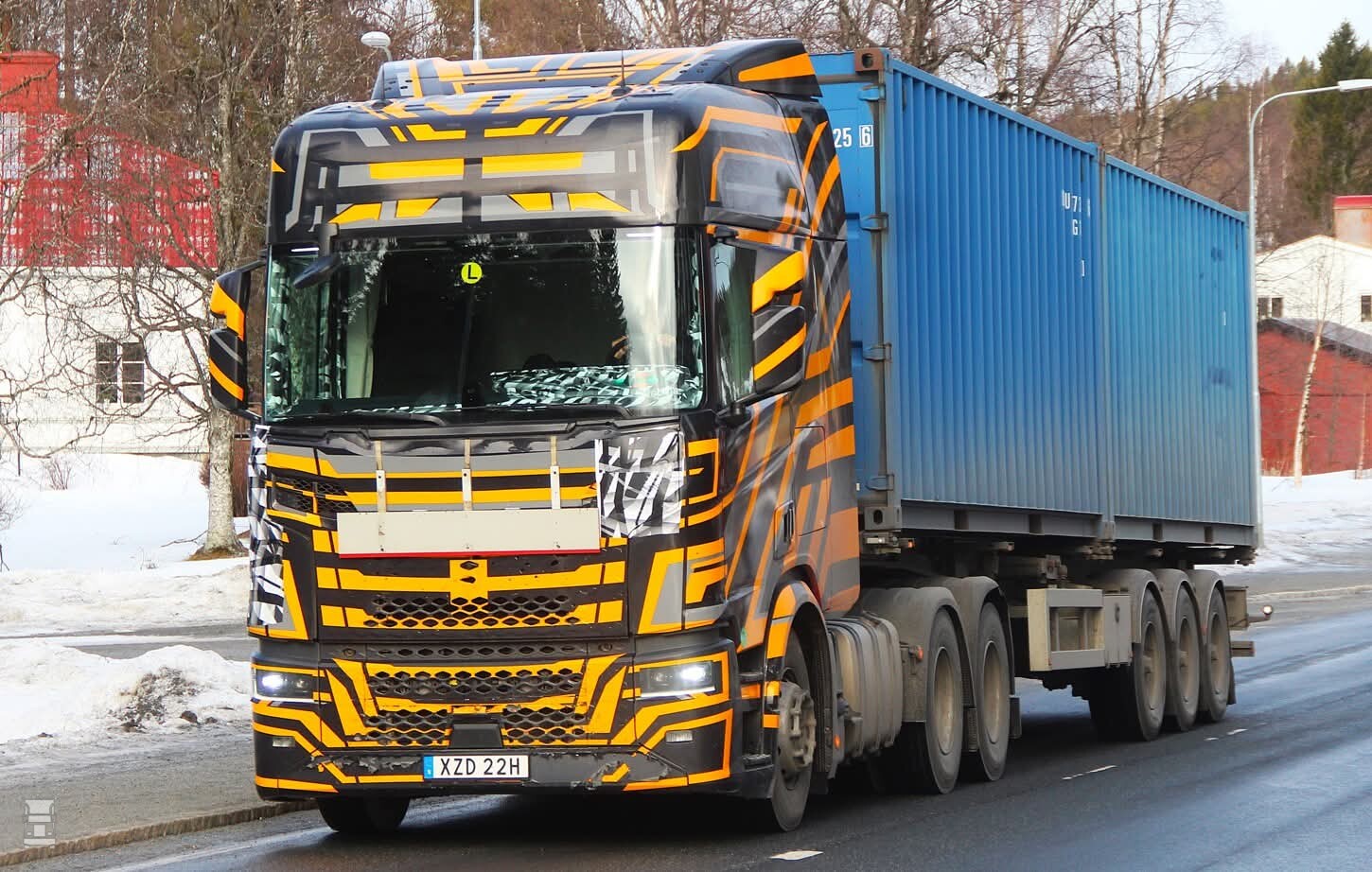 Opvallend is dat er nog wel gewoon buitenspiegels gemonteerd zijn, eerder zagen we ook weer de camera's opduiken op een testtruck. Het voordeel van camera's is natuurlijk de verminderde luchtweerstand, dus het lijkt een kwestie van tijd dat ook Scania daar mee komt.