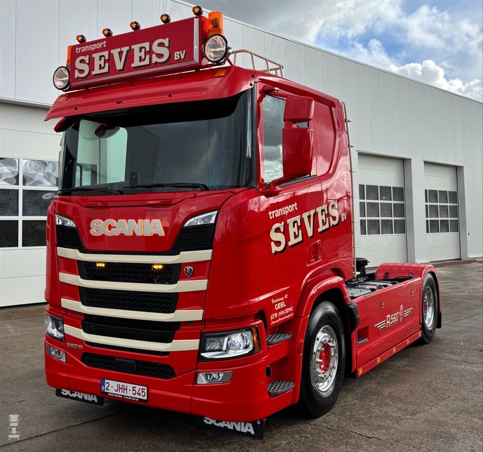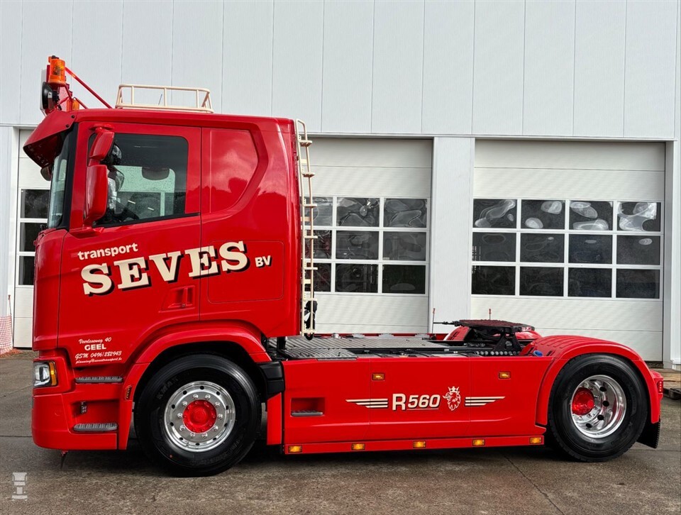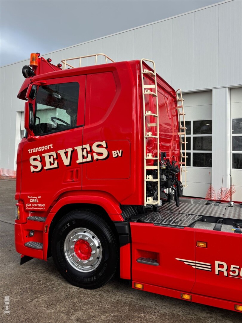 Geel slaat in dit geval op de plaats in België waar Transport Seves gevestigd is en duidelijk niet op de kleur van de vrachtwagen. Deze is namelijk felrood, zoals de rest van het wagenpark. Dit keer werd echter niet gekozen voor DAF, maar viel de keuze op een echte Scania V8. De 560R werd bovendien opvallend opgetuigd, zodat hij de sfeer uitademt van een trekker uit de jaren ‘80 en ‘90.