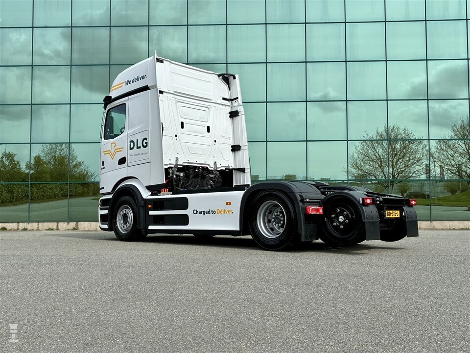 Voor DLG biedt dit mogelijkheden. Het bedrijf schafte vijf van deze eActros 600 trekkers aan. Het eerste exemplaar is nu afgeleverd. Dankzij de 4,5-tons naloopas kunnen de trekkers meer lading meenemen. DLG kan de elektrische trekkers wel gewoon aan de normale trailers koppelen. Dat is belangrijk, want er wordt veel van trailers gewisseld. De elektrische Mercedes-Benz trekkers kunnen opladen bij het eigen laadplein in Maasdijk.