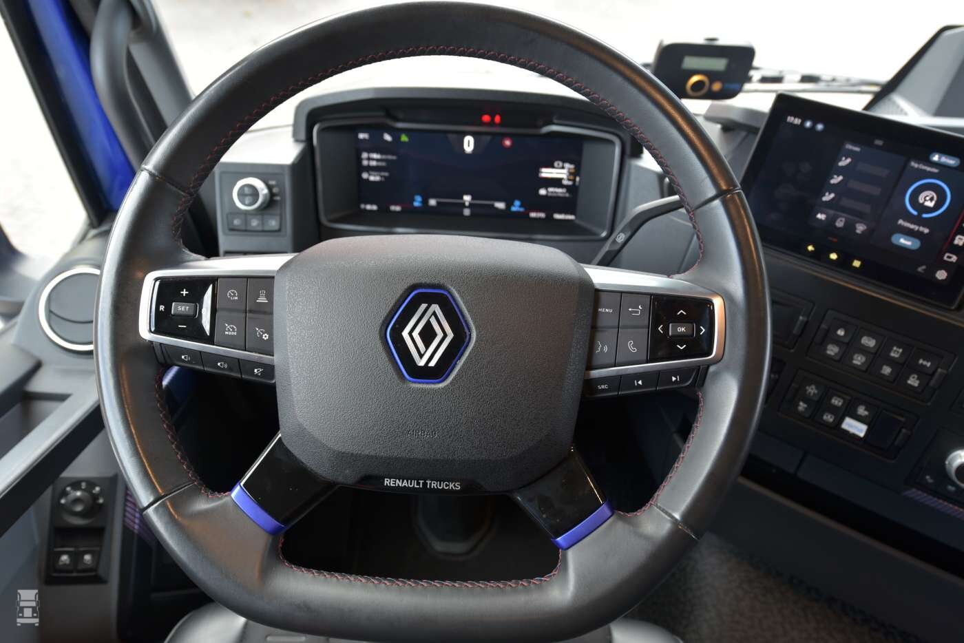 Eerlijk is eerlijk, de Renault E-Tech T is een mooie vrachtwagen. Waar andere merken drastische wijzigingen hebben gemaakt aan de cabine om hem gestroomlijnd te maken, heeft Renault het simpel gehouden. De E-Tech voldoet wel degelijk aan nieuwe Europese regels, waarmee de combinatie langer mag zijn. Alleen aan de iets uitstekende bumper zie je dit. Het front steekt veel minder ver naar voren dan bij de Volvo FH Aero, en dat kan doordat de T-cabine van zichzelf al meer gestroomlijnd is dan de Volvo. Het resultaat is een stoere vrachtwagen, die er vergeleken met de concurrentie helemaal niet verkeerd uitziet, zeker in de mooie kleur blauw van onze test-trekker.