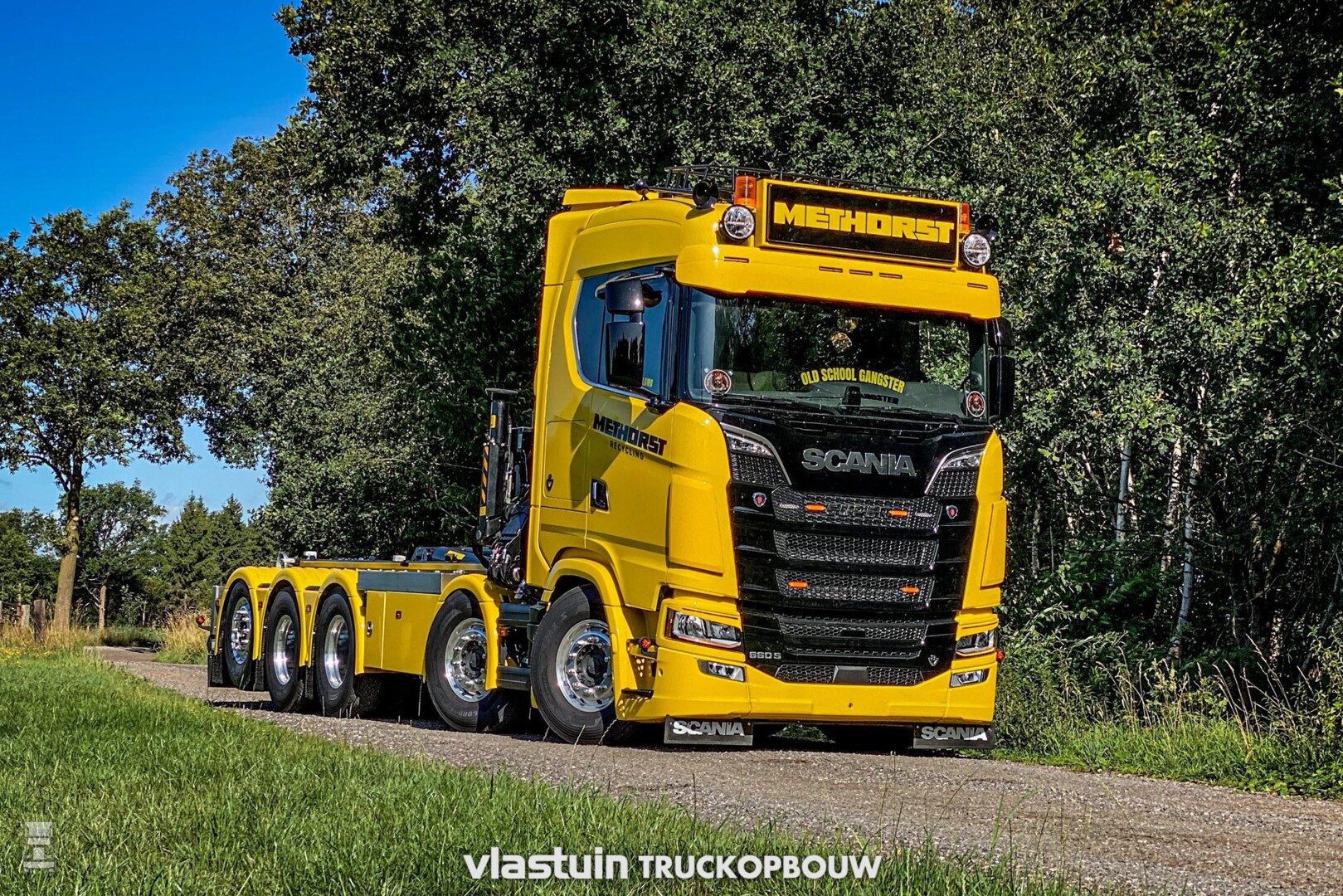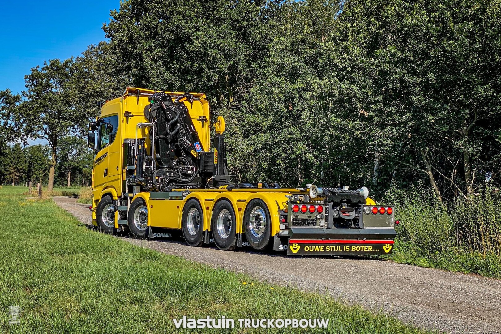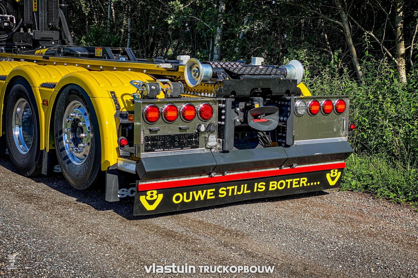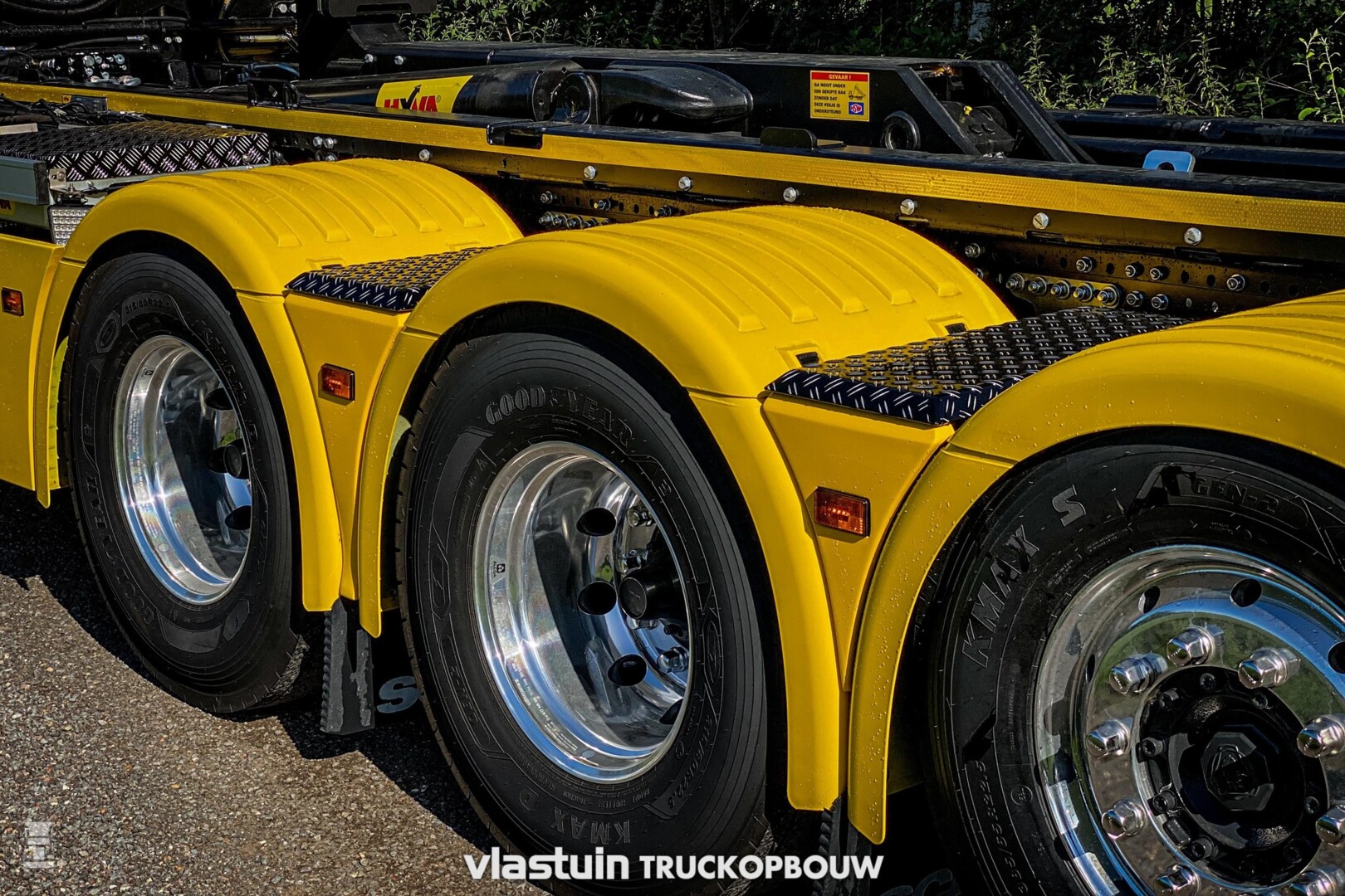 De truck werd voorzien van een Hyva haakarmsysteem en een Epsilon autolaadkraan door HSW, waarna de mannen van Vlastuin zorgden voor de verdere opbouw. Vlastuin zorgde voor de zonneklep met camera, raamwindgeleiders, hoekschilden, booskijkers, flitsers en markeringslampen in de grille.