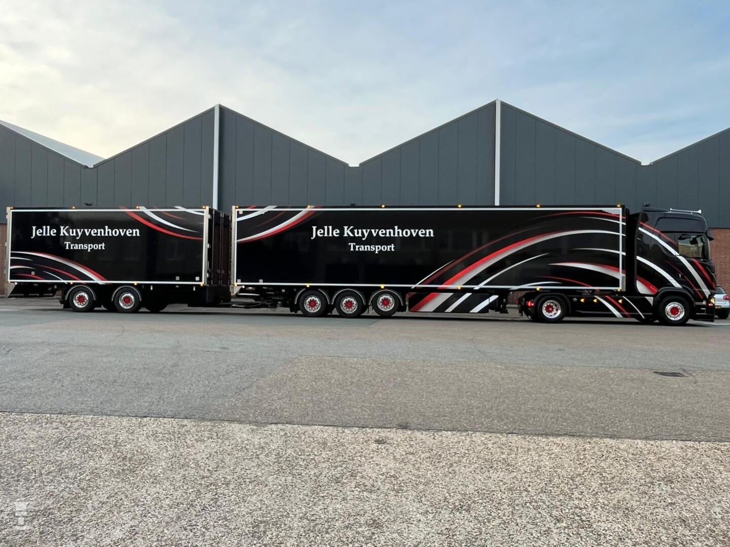 Jelle Kuyvenhoven Transport heeft zijn Actros ingeruild voor een nieuwe Scania 660S. De stoere V8 staat voor de bekende LZV combinatie, die volledig nieuw in de kleuren werd gezet door Tanco Sign & Print.