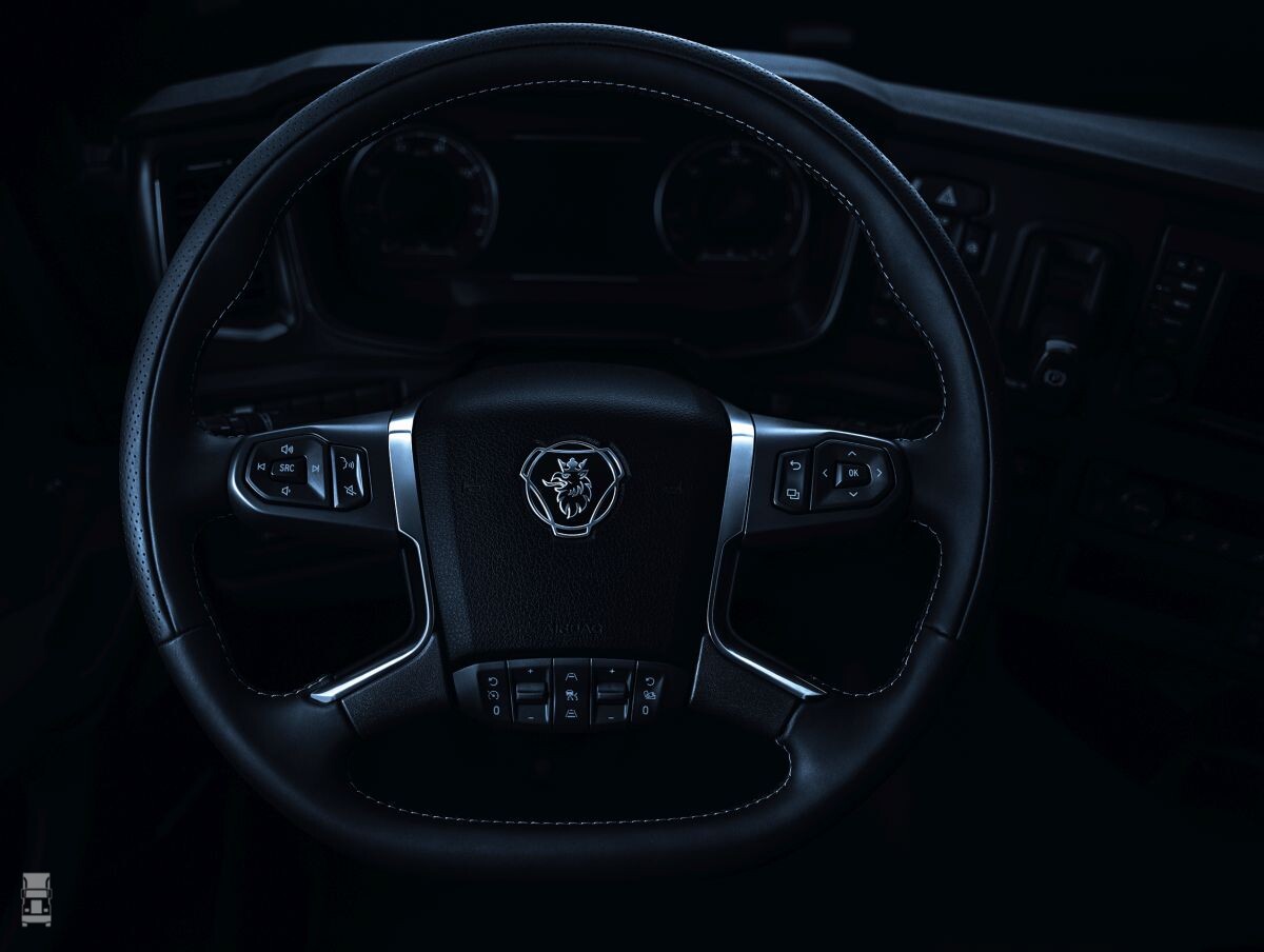 Wat opvalt aan de foto die dit bericht van Scania begeleidt, is dat er daadwerkelijk een ander dashboard en een afgeplat stuur. Nog steeds heeft de chauffeur zijn duimen nodig om de truck optimaal te bedienen. Te zien is dat de handrem zich op het dashboard bevindt. Geen knopje dus, zoals we zien bij Volvo en Renault.