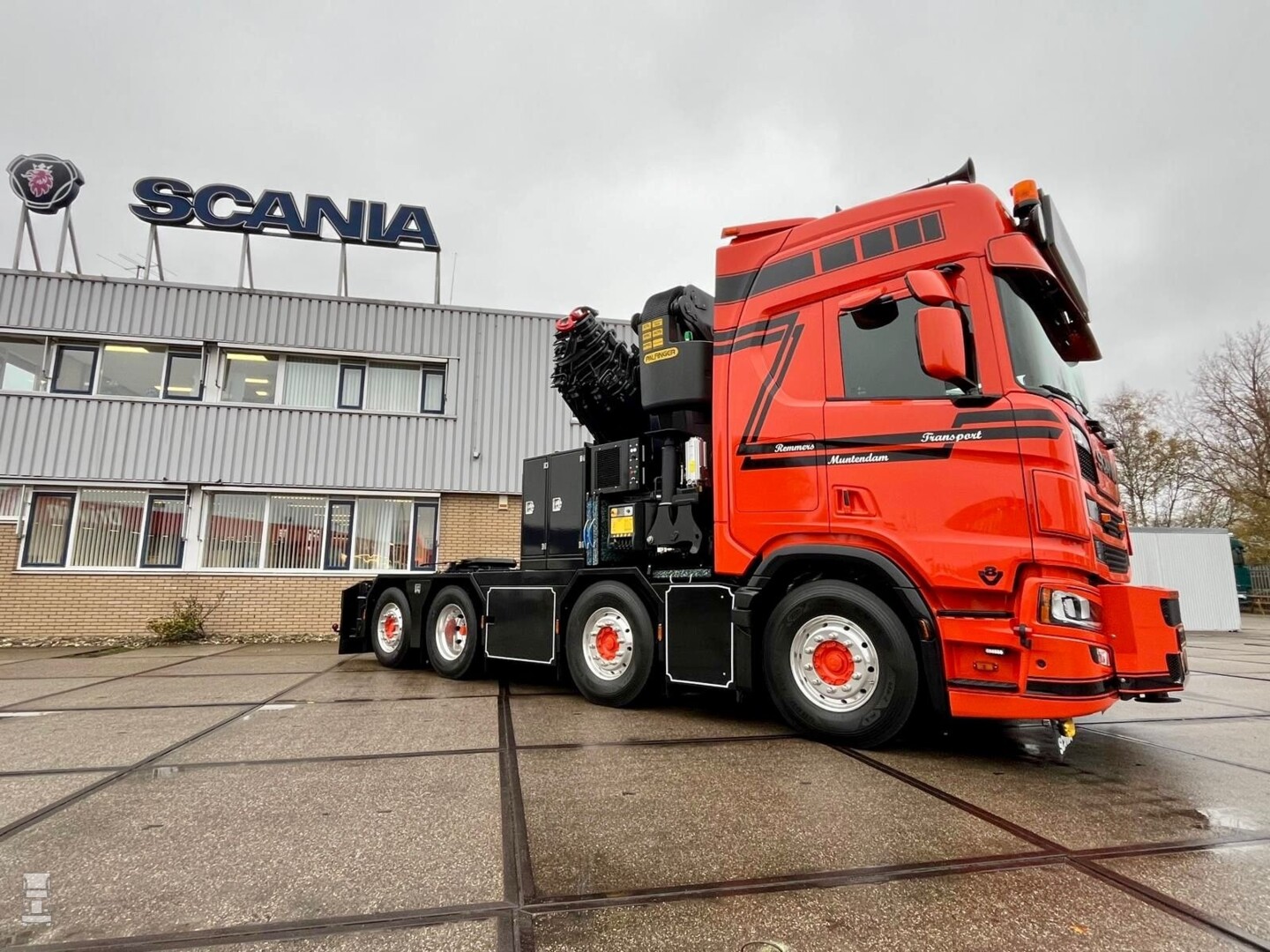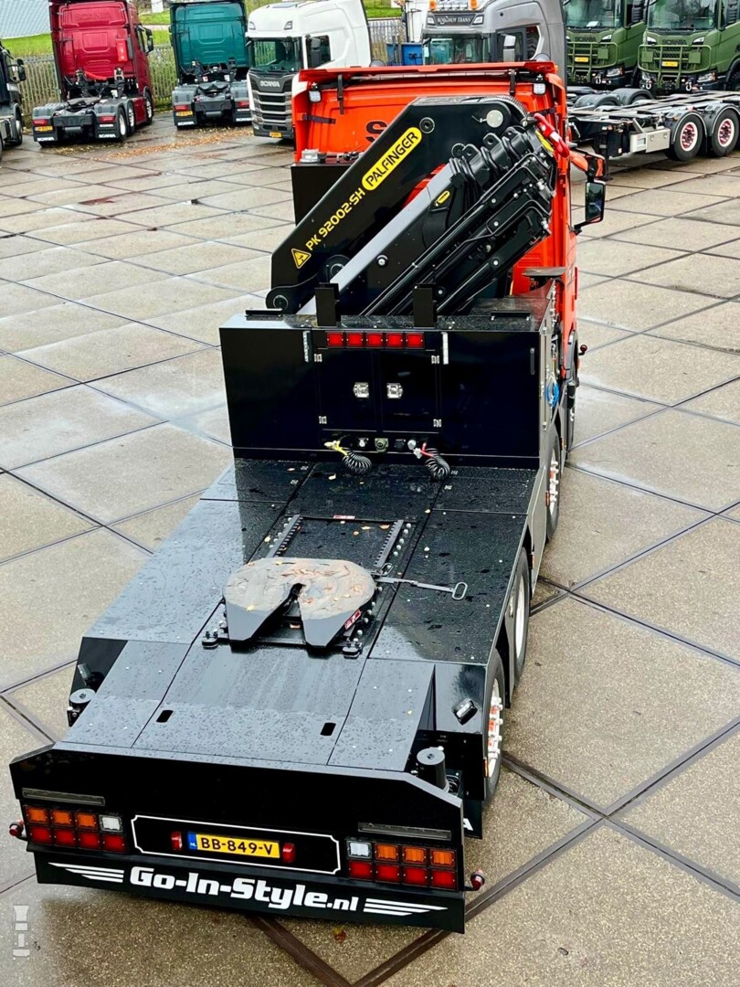 De volledig luchtgeveerde trekker werd voorbereid bij CDW in Zwolle, waarna Scania Groningen samen met Been Hydrauliek en SR Truckopbouw de truck opbouwden. De truck is voorzien van voorafstempeling, waardoor de kraan rondom zijn werk kan doen. Het spuitwerk werd uitgevoerd door Bos- Postema uit Grootegast.