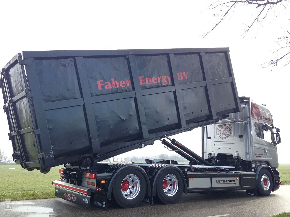Verreweg de meeste van de honderd Silver Griffin Limited Editions die rond rijden, zijn in trekkeruitvoering, maar de truck was eveneens als bakwagen te leveren. “En zo rijden wij, als enige in Nederland, nu met nummer 76 van deze Special Edition als een 6x2 bakwagenchassis met een haakarm voor containerbakken rond,” aldus Wim Faber.