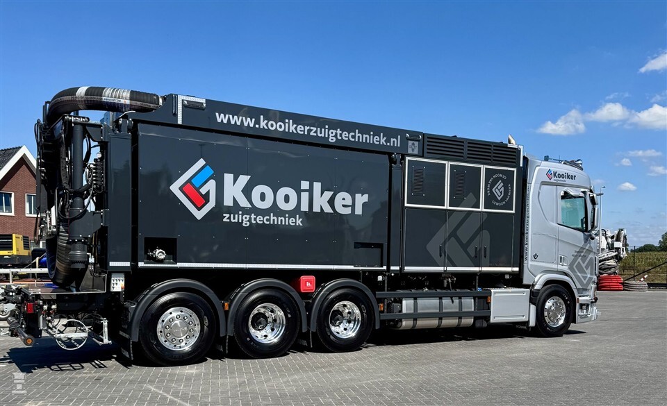 Op het chassis van de twee vrachtwagens is een installatie opgebouwd waarmee grond, zand en grind kan worden opgezogen. Deze zuigtechniek wordt ingezet als gewoon graven niet kan. De installatie kan overigens ook blazen, zodat ruimtes eenvoudig opgevuld kunnen worden met bijvoorbeeld zand. de nieuwe Scania R660 V8’s van Kooiker zijn dus niet alleen mooi om te zien, maar ook erg functioneel.