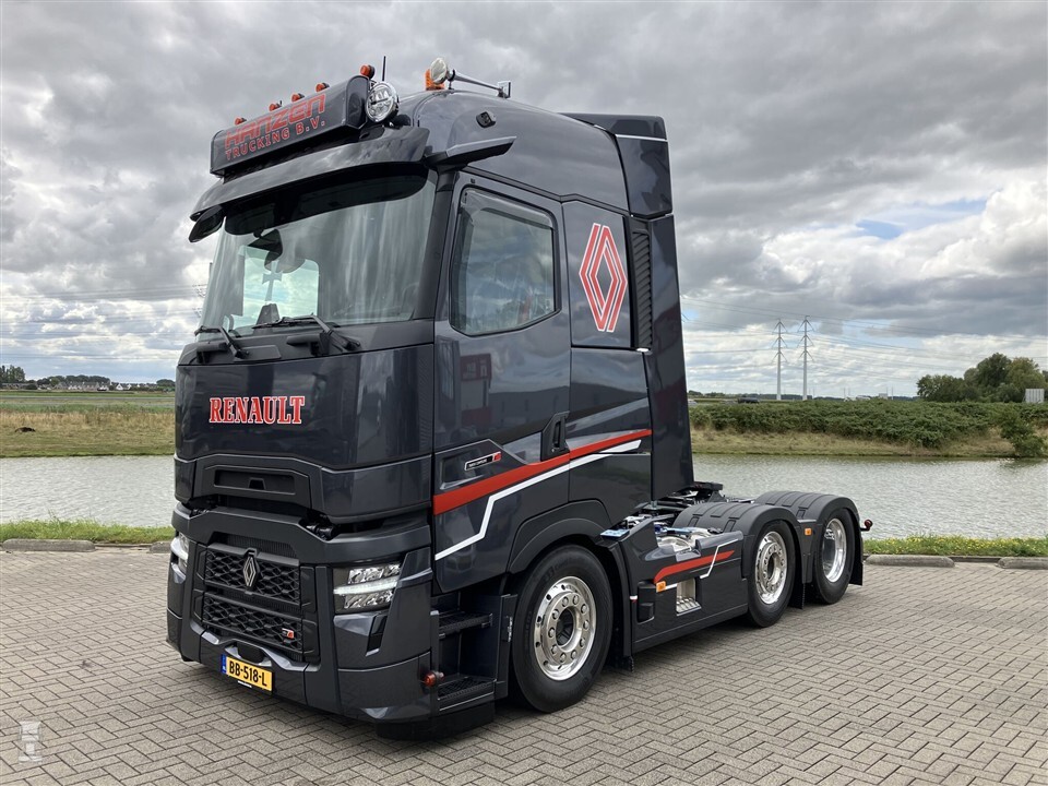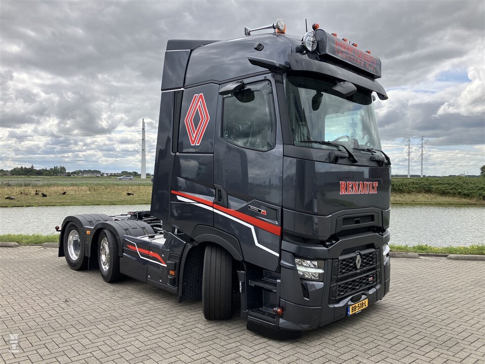 De Renault T High kun je dik aankleden, bewijst niet alleen het jubileummodel van Harbers uit ons magazine, maar ook de nieuwste aanwinst van Hanzen Trucking uit Serooskerke. Dit bedrijf, dat in 2019 werd opgericht, schafte al eerder enkele Renaults aan. Ook dit keer koos Hanzen voor de T High voorzien van de 480 pk sterke turbo compound-motor. De 6x2 trekker is voorzien van een hydraulisch gestuurde voorloopas.